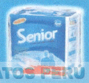 La etiqueta conformado en el extremo superior izquierdo por una figura ovalada y conteniendo la denominación NUEVO escrita en letras características, en el centro se aprecia la denominación SENIOR escrita en letras características y debajo la silueta de dos personas y al lado izquierdo la figura de un pañal; sin reivindicar colores y frases alusivas al producto; conforme al modelo adjunto