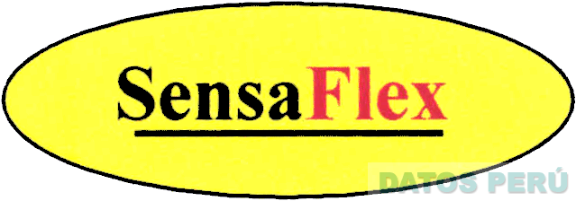El logotipo conformado por la denominación SENSAFLEX escrita en letras características sobre una línea horizontal y todo ello dentro de una figura ovoide, en los colores amarillo, rojo y negro; conforme al modelo adjunto