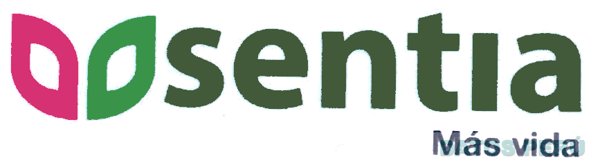 El logotipo conformado por la denominación SENTIA escrita en letras características, al lado izquierdo se aprecia la representación estilizada de dos hojas, y en la parte inferior derecha la frase MAS VIDA escrita en letras características (SIN REIVINDICAR), todo en la combinación de colores magenta y verde en diversas tonalidades, conforme al modelo adjunto