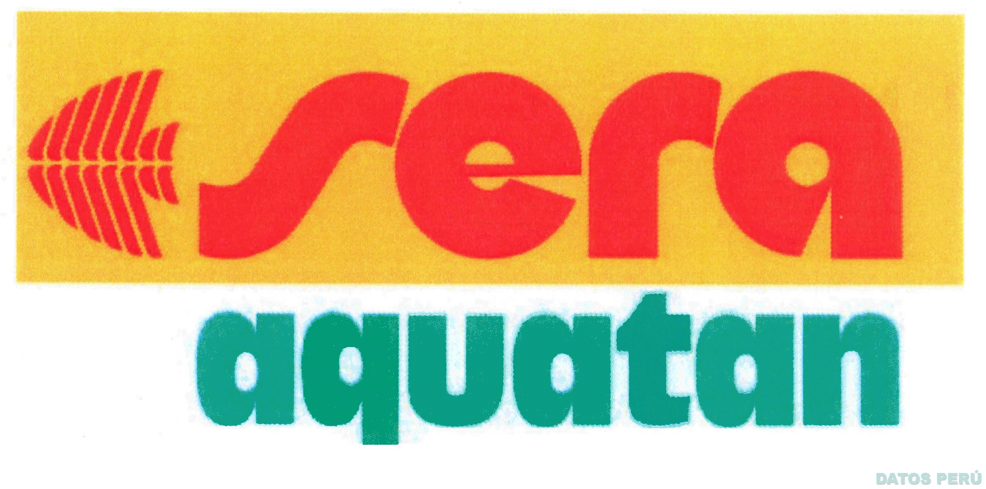 El logotipo conformado por la denominación SERA AQUATAN y el diseño de un pez estilizado, en los colores rojo, verde y amarillo; conforme al modelo adjunto