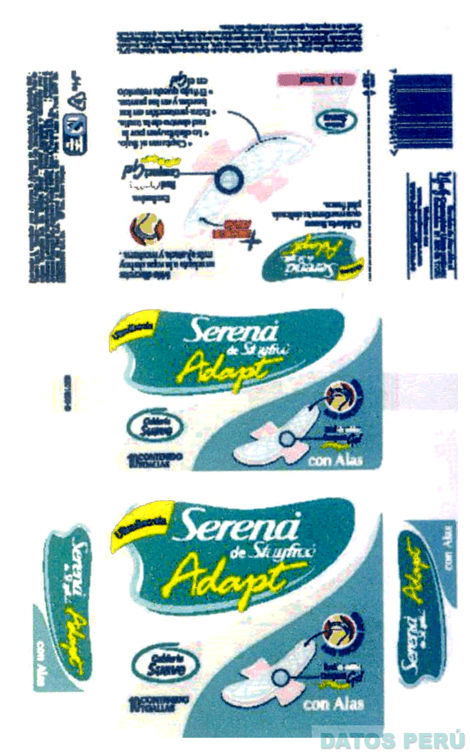 LA ENVOLTURA CONTENIENDO LA DENOMINACION SERENA DE STAYFREE ADAPT EN LA COMBINACION DE LOS COLORES VERDE, AMARILLO, ROJO, GRIS, BLANCO Y ROSADO; CONFORME AL MODELO ADJUNTO