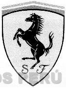 La representación de un escudo conteniendo el diseño de un caballo rampante y las letras SF con su escritura característica y dos líneas angulares en la parte superior, sin reivindicar colores; conforme al modelo adjunto