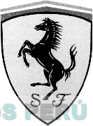 La representación de un escudo conteniendo un caballo rampante y las letras SF con su escritura característica y dos líneas angulares en la parte superior; conforme al modelo adjunto