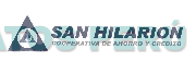 El logotipo conformado por la denominación SAN HILARION y la frase COOPERATIVA DE AHORRO Y CREDITO, ambas escritas en letras características, antecedidas por la figura de un triángulo encerrado dentro de otro triángulo que a su vez encierra una figura circular dividida, la cual tiene dentro las letras S y H, todo en la combinación de colores azul, gris y blanco; conforme al modelo adjunto