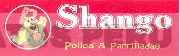 El logotipo de forma rectangular (sin reivindicar el fondo color rojo) conformado por la denominación SHANGO POLLOS & PARRILLADAS escrita en letras características, a cuyo lado izquierdo se aprecia la figura humanizada de un pollo encerrada en un círculo, en los colores amarillo, marrón claro, rojo y blanco; conforme al modelo adjunto.