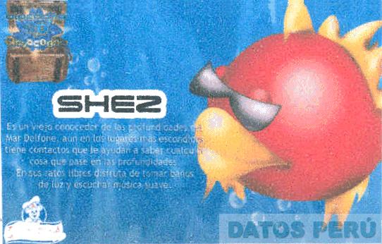 La denominación SHEZ escrita en letras características, las figuras de un pez y un oso estilizados, y demás frases sin reivindicar, en colores anaranjado, amarillo, gris, celeste, azul, blanco, rojo, negro y marrón; conforme al modelo adjunto