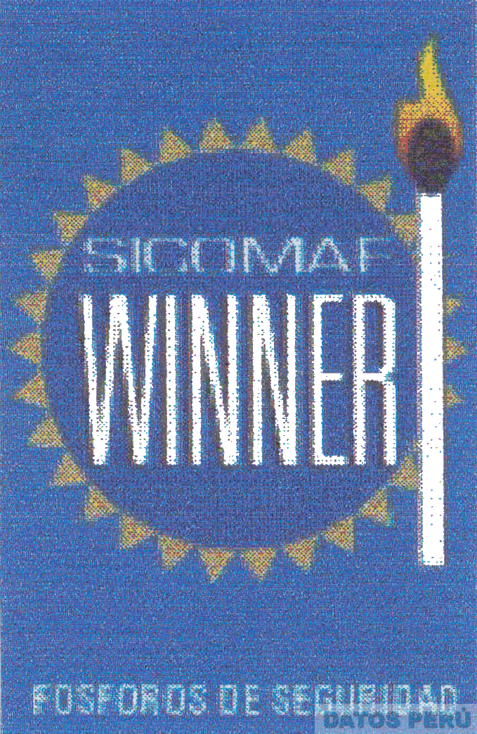 La etiqueta de color azul que contiene una figura circular representando el sol de color amarillo, dentro de la cual aparece la denominación SICOMAF WINNER escrita en letras características en color blanco, al lado derecho aparece un fósforo prendido, debajo aparece la frase FOSFOROS DE SEGURIDAD escrita en letras características; conforme al modelo adjunto