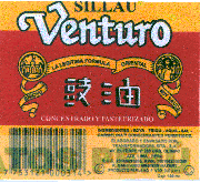 La etiqueta conformada por la denominación SILLAU escrita en letras características color negro y por debajo de ésta, la denominación VENTURO escrita en letras características de color blanco delineada de color negro; asimismo, se aprecia la denominación LA LEGITIMA FORMULA ORIENTAL, así como la frase CONCENTRADO Y PASTEURIZADO escrita en letras características y arriba de ella, dos grafías chinas, en los colores blanco y negro; todo en un rectángulo de fondo amarillo y rojo; conforme al modelo adjunto