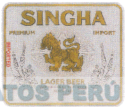 La denominación SINGHA PREMIUN IMPORT LAGER BEER y logotipo (se reivindica colores), conforme al modelo