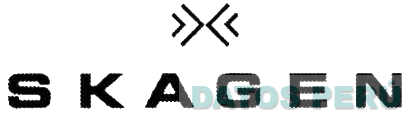 El logotipo conformado por la denominación SKAGEN escrita en letras características, en la parte superior, la figura formada por dos flechas estilizadas constituida por dos líneas convergentes; conforme al modelo adjunto
