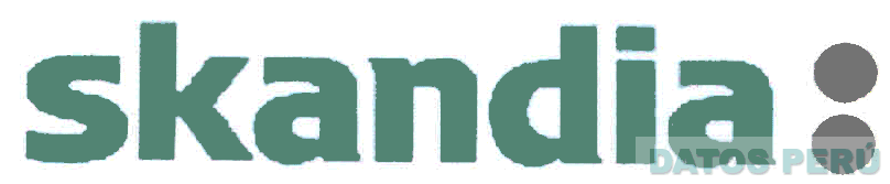 El logotipo conformado por la denominación SKANDIA escrita en letras características en color verde y la figura de dos círculos pequeños en color gris; conforme al modelo adjunto