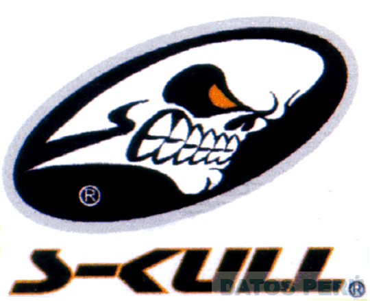 LA ETIQUETA CONSTITUIDA POR LA DENOMINACION SKULL ESCRITA EN LETRAS CARACTERISTICAS DONDE LA LETRA K SE APRECIA EN FORMA ESTILIZADA, EN LA PARTE SUPERIOR SE ENCUENTRA UNA FIGURA CIRCULAR OVOIDE INCLINADA HACIA LA DERECHA EN CUYO INTERIOR SE APRECIA LA REPRESENTACION DE UN CRANEO DE CALAVERA, TODO EN LOS COLORES NEGRO, BLANCO, PLOMO Y ANARANJADO; CONFORME AL MODELO ADJUNTO,