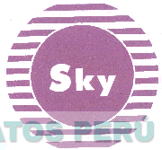 El logotipo conformado por la denominación SKY escrita en letras características dentro de una figura circular y a su alrededor se aprecian diversas líneas paralelas horizontales que forman otra figura circular, en los colores morado y blanco; conforme al modelo adjunto
