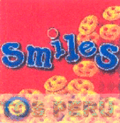 El logotipo conformado por la denominación SMILES escrita en letras características y el diseño estilizado de galletas circulares con diseños de caritas felices, todo dentro de una figura cuadrangular, en la combinación de colores rojo, azul, amarillo y anaranjado; conforme al modelo adjunto