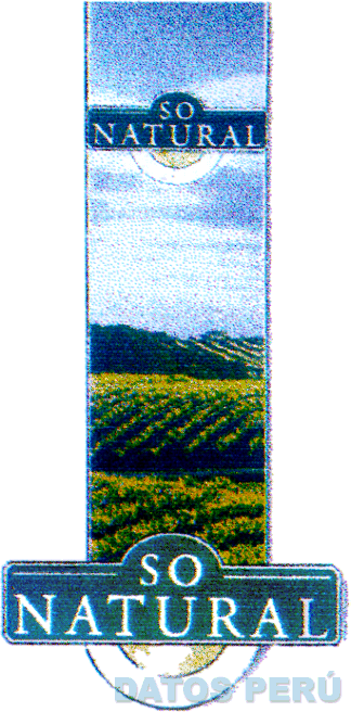 LA DENOMINACION SO NATURAL, EN LETRAS CARACTERISTICAS, Y EL DISEÑO DE UN PAISAJE RURAL, TODO ENCERRADO DENTRO DE FORMAS GEOMETRICAS IRREGULARES, EN LOS COLORES VERDE, AMARILLO, AZUL Y BLANCO, CONFORME AL FACSIMIL ADJUNTO,