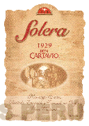 La etiqueta en diversas tonalidades de color beige, en cuya parte superior aparece una figura semicircular cuyo interior es de color rojo con bordes negros y dorados, la misma que contiene la figura estilizada de tres plantas de caña en color negro y la figura estilizada de un sol en color blanco, debajo aparece la denominación SOLERA escrita en letras características en color rojo con bordes beige, seguida de la frase 1929 RON CARTAVIO en color rojo y la figura oval que contiene diversos barriles en color beige y blanco; conforme al modelo adjunto