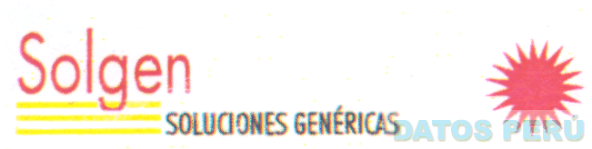 La denominación SOLGEN SOLUCIONES GENERICAS escrita en letras características, en colores rojo y negro, con tres líneas amarillas debajo del termino SOLGEN, todo ello, junto al diseño constituido por una figura estilizada que asemeja a un sol, en color rojo, conforme al modelo adjunto