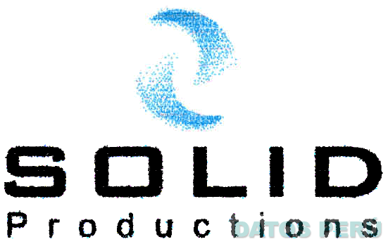 El logotipo conformado por la denominación SOLID PRODUCTIONS escrita en letras características y sobre ésta dos figuras irregulares, todo en la combinación de colores blanco, celeste y negro; conforme al modelo adjunto