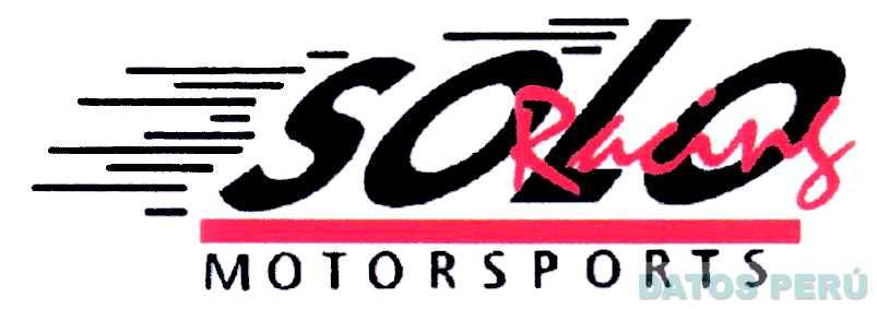 El logotipo conformado por la denominación SOLO RACING MOTORSPORTS escrita en letras características, donde la palabra SOLO se encuentra subrayada, al lado izquierdo se aprecian diversas líneas horizontales, todo en la combinación de colores rojo y negro; conforme al modelo adjunto