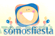 El logotipo conformado por la denominación SOMOSFIESTA y la representación estilizada de una figura sonriente sobrepuesta a una figura irregular, a los extremos la representación de tres globos; todo esto en la combinación de colores amarillo, azul, blanco, anaranjado, rojo y rosado; conforme al modelo adjunto