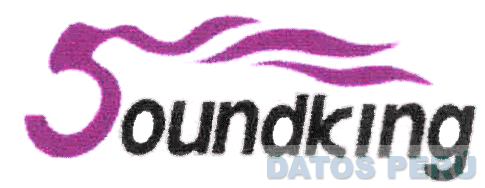 El logotipo conformado por la denominación SOUNDKING escrita en letras características; asimismo se aprecia que la letra S tiene la forma de una llama flamante en la parte superior; en los colores morado y negro; conforme al modelo adjunto