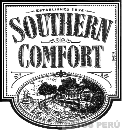 LA DENOMINACION SOUTHERN COMFORT EN LETRAS CARACTERISTICAS, DENTRO DE UNA ETIQUETA CUADRADA QUE PRESENTA EN LA PARTE INFERIOR UNA FIGURA OVAL CONTENIENDO UN PAISAJE RURAL, CONFORME AL FACSIMIL ADJUNTO