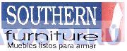El logotipo conformado por la denominación SOUTHERN escrita en letras características en color blanco, dentro de un rectángulo de fondo azul, debajo aparece, en dos líneas, la denominación FURNITURE MUEBLES LISTOS PARA ARMAR escrita en letras características y en color negro; en la parte derecha aparece una figura rectangular de color rojo que contiene la representación estilizada de la letra S de color blanco; conforme al modelo adjunto