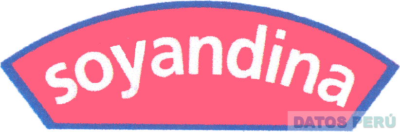 El logotipo conformado por la denominación SOYANDINA escrita en letras características dentro de una figura de forma irregular, todo en los colores blanco, rojo y azul; conforme al modelo adjunto