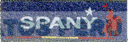 El logotipo conformado por la denominación SPANY escrita en letras características con una estrella sobre la letra Y, acompañada por la figura estilizada de un hombre montando un caballo y una línea en la parte inferior, todo en los colores azul, rojo y amarillo; conforme al modelo adjunto