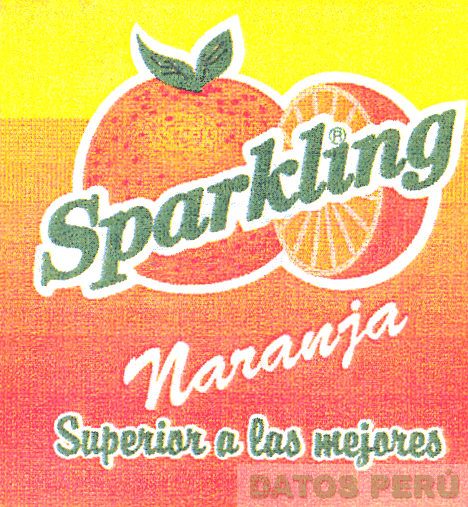 EL LOGOTIPO CONFORMADO POR LA DENOMINACION SPARKLING NARANJA ESCRITA EN LETRAS CARACTERISTICAS Y LAS FIGURAS ESTILIZADAS DE DOS NARANJAS, UNA ENTERA CON HOJAS Y LA OTRA PARTIDA, DEBAJO LA FRASE SUPERIOR A LAS MEJORES ESCRITA EN LETRAS CARACTERISTICAS, EN LA COMBINACION DE COLORES AMARILLO, VERDE, BLANCO Y ANARANJADO; CONFORME AL MODELO ADJUNTO