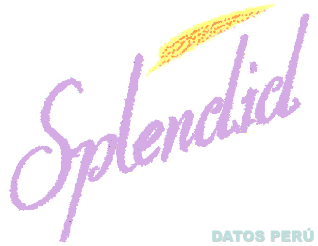 La denominación SPLENDID escrita en letras características en color lila, sobre la que se aprecia una línea estilizada en color amarillo con puntos de color anaranjado; conforme al modelo adjunto