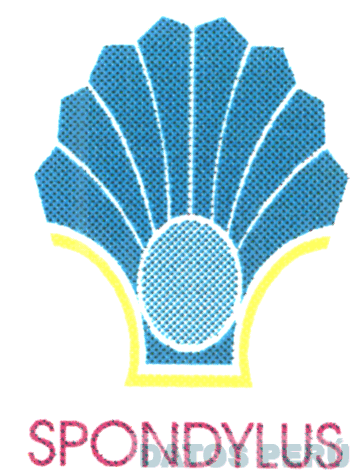 LA DENOMINACION SPONDYLUS, ESCRITA EN COLOR GUINDA OSCURO, ACOMPAÑADA DE UNA FIGURA REPRESENTANDO UNA CONCHA, FORMADA POR UNA BASE EN LINEA AMARILLA, UN CIRCULO TURQUESA CLARO Y 8 BANDAS CURVAS EN TURQUESA OSCURO; CONFORME AL MODELO ADJUNTO,