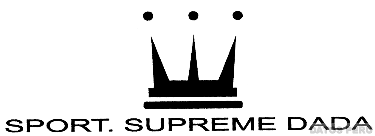 El logotipo conformado por la denominación SPORT. SUPREME DADA escrita en letras características, sobre la cual se aprecia la representación estilizada de una corona, en los colores blanco y negro; conforme al modelo adjunto.