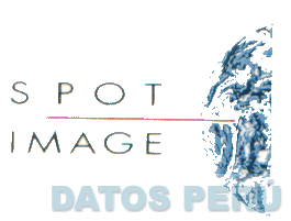 La denominación SPOT IMAGE y un segmento del globo terráqueo señalado por una línea horizontal, en la combinación de los colores blanco, rojo, negro, celeste y azul, conforme al modelo adjunto