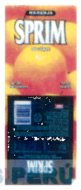 LA ENVOLTURA RECTANGULAR CON FONDO FORMADO POR FIGURAS DE NARANJAS CON SU COLOR ANARANJADO; CONTENIENDO LA DENOMINACION SPRIM EN LETRAS COLOR BLANCO CON BORDE COLOR VERDE OSCURO, TENIENDO DEBAJO LAS PALABRAS COMUNES "SABOR NATURAL" EN LETRAS COLOR BLANCO, LA PORCION QUE CORRESPONDE AL LADO POSTERIOR DE LA ENVOL