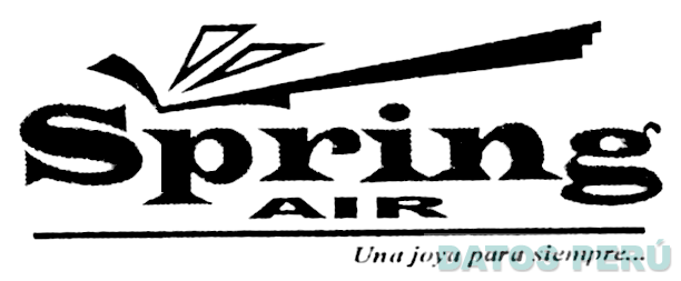 El logotipo conformado por la denominación SPRING AIR escrita en letras características sobre la cual se aprecian figuras irregulares y debajo una línea horizontal y la frase UNA JOYA PARA SIEMPRE... escrita en letras características, sin reivindicar colores; conforme al modelo adjunto