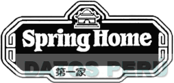 La denominación SPRING HOME encerrada, en una etiqueta irregular, presentando caracteres orientales, en la parte inferior. En la parte superior la representación de una casa oriental, destacando en los bordes de la etiqueta líneas sinuosas, conforme al modelo adjunto