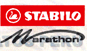 El logotipo conformado por la denominación STABILO MARATHON escrita en letras características y la figura estilizada de un cisne dentro de un círculo, en los colores rojo, gris, blanco y negro; conforme al modelo adjunto