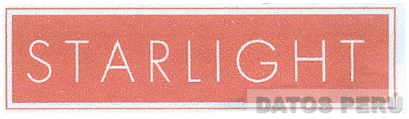 La denominación STARLIGHT escrita en letras características de color blanco sobre un fondo de color rojo, todo dentro de un recuadro de color blanco y a la vez delineado en color rojo; conforme al modelo adjunto