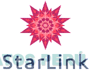 El logotipo conformado por la denominación STARLINK escrita en letras características, y la representación estilizada de una estrella con 10 puntas en cuyo interior se aprecian figuras de diferentes tamaños, todo en los colores rosado en diferentes tonalidades, morado, rojo y azul; conforme al modelo adjunto