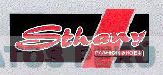 El logotipo conformado por la denominación STHANY escrita en letras características, debajo la frase FASHION SHOES escrita en letras características dentro de una figura rectangular y una línea irregular; todo sobre una figura rectangular y una figura geométrica dividida en tres partes y en la combinación de colores rojo, blanco, negro y gris; conforme al modelo adjunto
