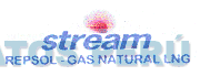 El logotipo conformado por la denominación STREAM REPSOL-GAS NATURAL LNG escrita en letras características, en la parte superior se aprecia una figura irregular, en la combinación de colores azul, rojo y amarillo; conforme al modelo adjunto
