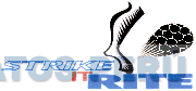 El logotipo conformado por la denominación STRIKE IT RITE escrita en letras características, y la figura estilizada de una pierna con un balón de fútbol que se desprende de ella, todo en los colores azul, celeste, rojo, negro y blanco; conforme al modelo adjunto