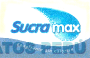 El logotipo rectangular que contiene la denominación SUCRAMAX escrita en letras características, detrás de la palabra MAX se aprecia la representación estilizada de una gota, en la parte inferior aparece la denominación ENDULZANTE SIN CALORÍAS escrita en letras características, todo en los colores azul, blanco, celeste y amarillo; conforme al modelo adjunto