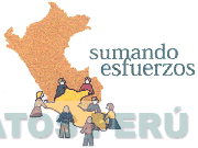 El logotipo conformado por la denominación SUMANDO ESFUERZOS escrita en letras características y la representación estilizada de un mapa del Perú y sobrepuesto a él se aprecia otro mapa el cual se encuentra sostenido por siete personas; todo en los colores azul, rojo, verde, amarillo, anaranjado, marrón y negro; conforme al modelo adjunto