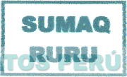 El logotipo conformado por la denominación SUMAQ RURU escrita en letras características, encerrada en una figura cuadrangular, en los colores verde y blanco; conforme al modelo adjunto