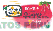 La denominación SUNCHANG GOCHUJANG (HOT PEPPER PASTE) y logotipo (se reivindica colores), conforme al modelo