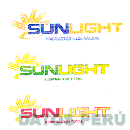 La denominación SUNLIGHT PRODUCTOS ILUMINACION SUN LIGHT ILUMINACION TOTAL y logotipo (se reivindica colores), conforme al modelo