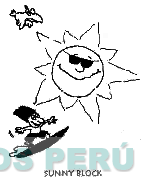 La etiqueta conformada por la denominación SUNNY BLOCK y el diseño humanizado y sonriente del sol con gafas y sobrevolado por un pájaro, consignándose al pie del mismo, el diseño estilizado de un niño montado sobre una tabla de surf; conforme al modelo adjunto.