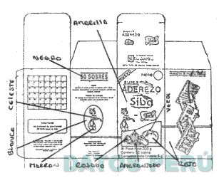 La denominación SUPER ADEREZO SIBA SIBARITA y la figura de dos negritas, con 5 sobres y demás características en la combinación de colores amarillo, rojo, verde, celeste, blanco, negro, marrón rosado y anaranjado y según modelo del facsímil